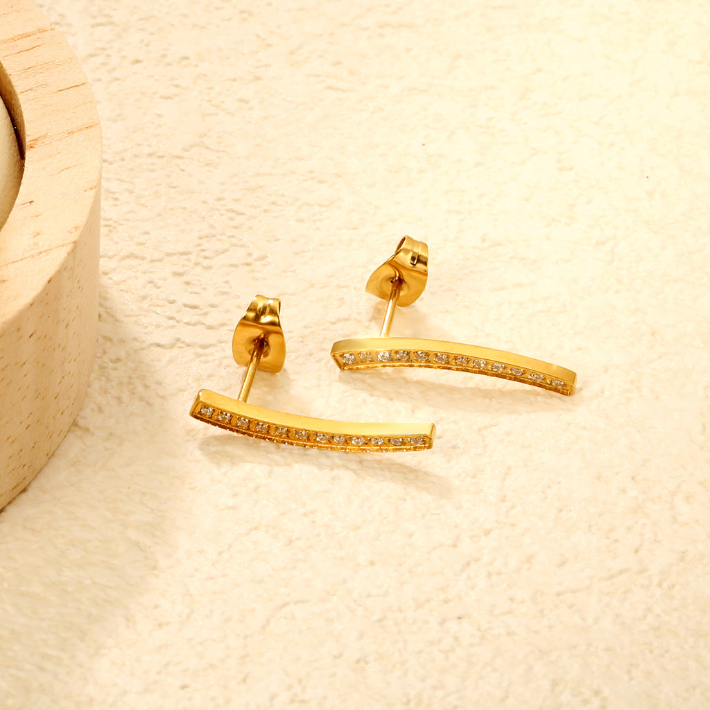 Precision-cut willow leaf studs crafted with CNC diamond detailing and finished in lustrous gold. These elongated earrings feature a refined eyebrow silhouette that flatters the face while maintaining understated elegance. The geometric faceting catches light beautifully, adding dimension without overwhelming. Ideal for those seeking sophisticated everyday wear or a polished addition to evening looks. Stainless steel construction ensures durability and comfort for extended wear.