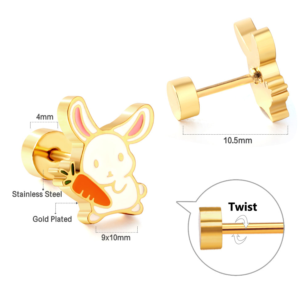 Pendientes de tuerca de rábano con conejo de colores mezclados con tapón de acero inoxidable