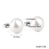 Aretes de perlas blancas planas de 14 mm