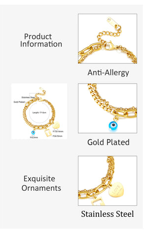 Bracelet double en forme de coeur + rectangulaire en forme de T creux + 1 globe oculaire bleu