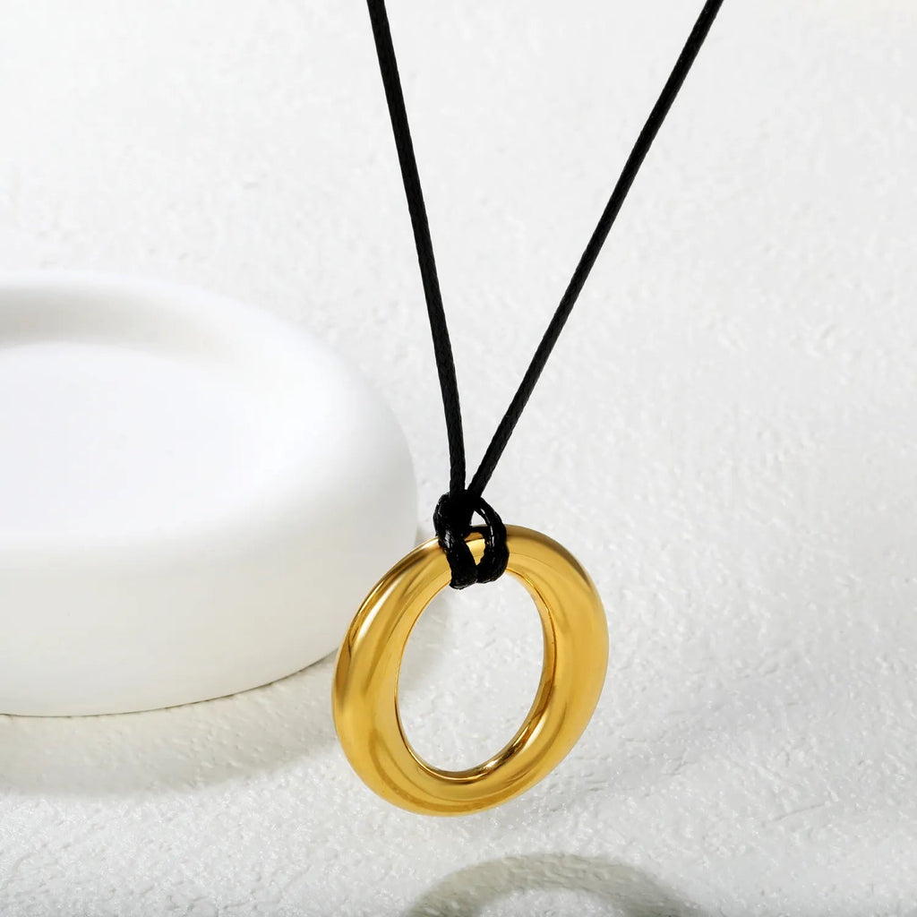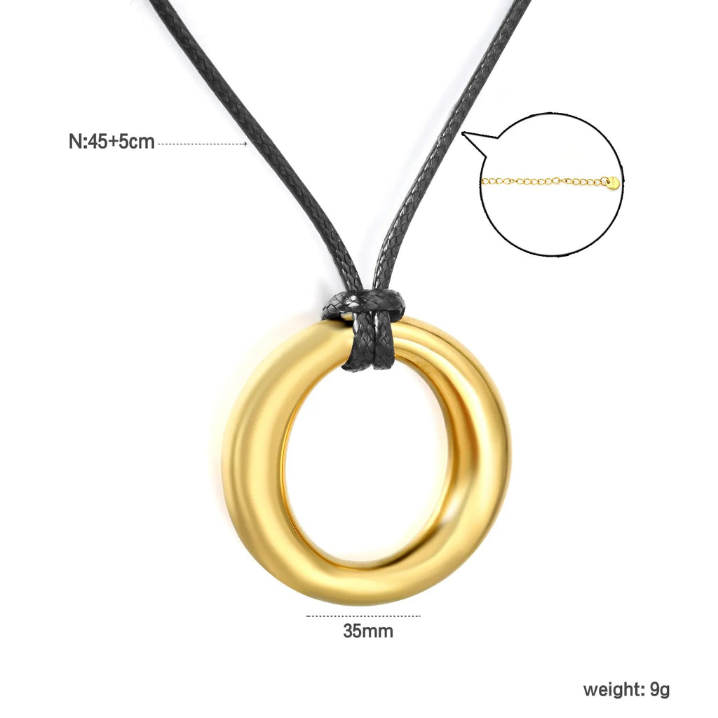 Enhance your style with our 35mm Hollow Circle Pendant Necklace. Crafted with a 45+5cm+6mm Round Plaque Leather Strap, this necklace exudes elegance and sophistication. Made of durable Steel and coated in luxurious Gold, wear it alone or layer with other accessories for a versatile look.