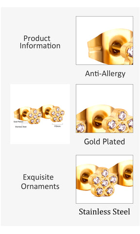 Boucles d'oreilles en forme de fleur en acier inoxydable avec diamants