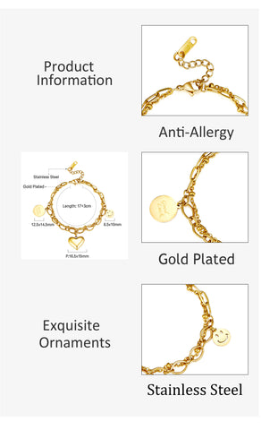 Bracelet Double Accessoires Forme Coeur + Rond + Smiley