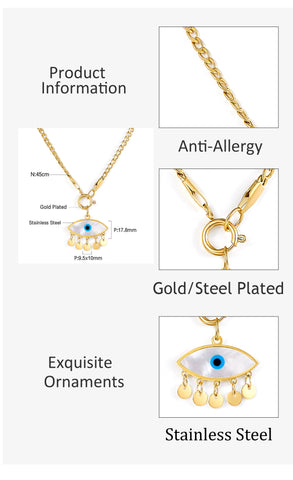 Collier d'accessoires pour les yeux en acier inoxydable plaqué or 18 carats