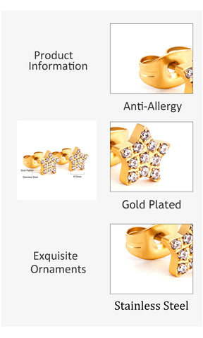 Boucles d'oreilles pentagramme en acier inoxydable avec diamants