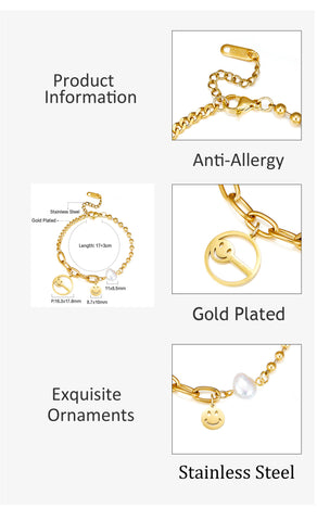 Smiley + Circle Hollow avec accessoires Smiley et bracelet en perles blanches de forme spéciale