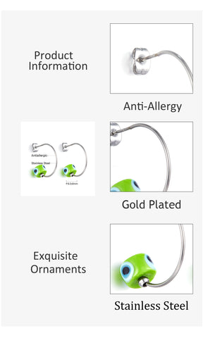Boucles d'oreilles mode yeux verts en acier inoxydable