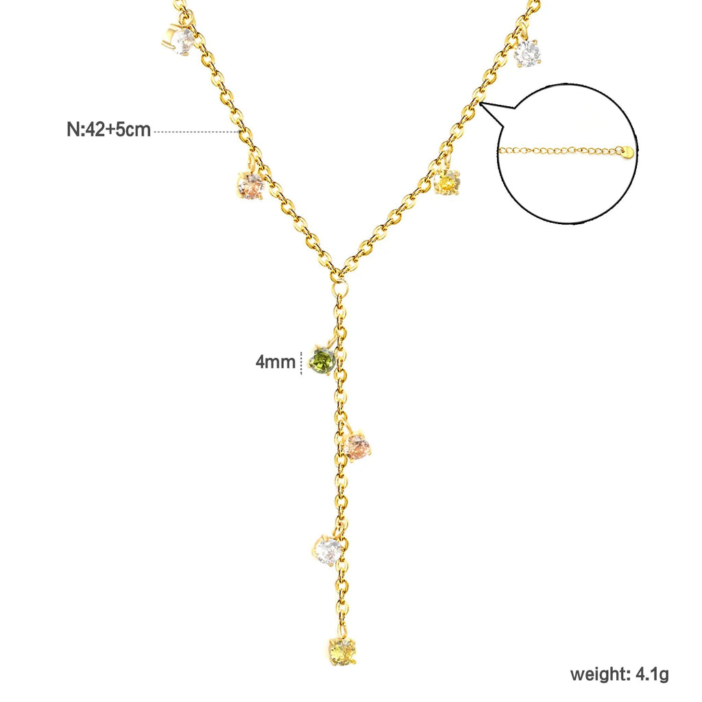 8 pieces of 4mm round diamonds, 0.4-inch cross chain, 42+5cm (downward part) + 5cm tail chain + 6mm round tail fin, golden color