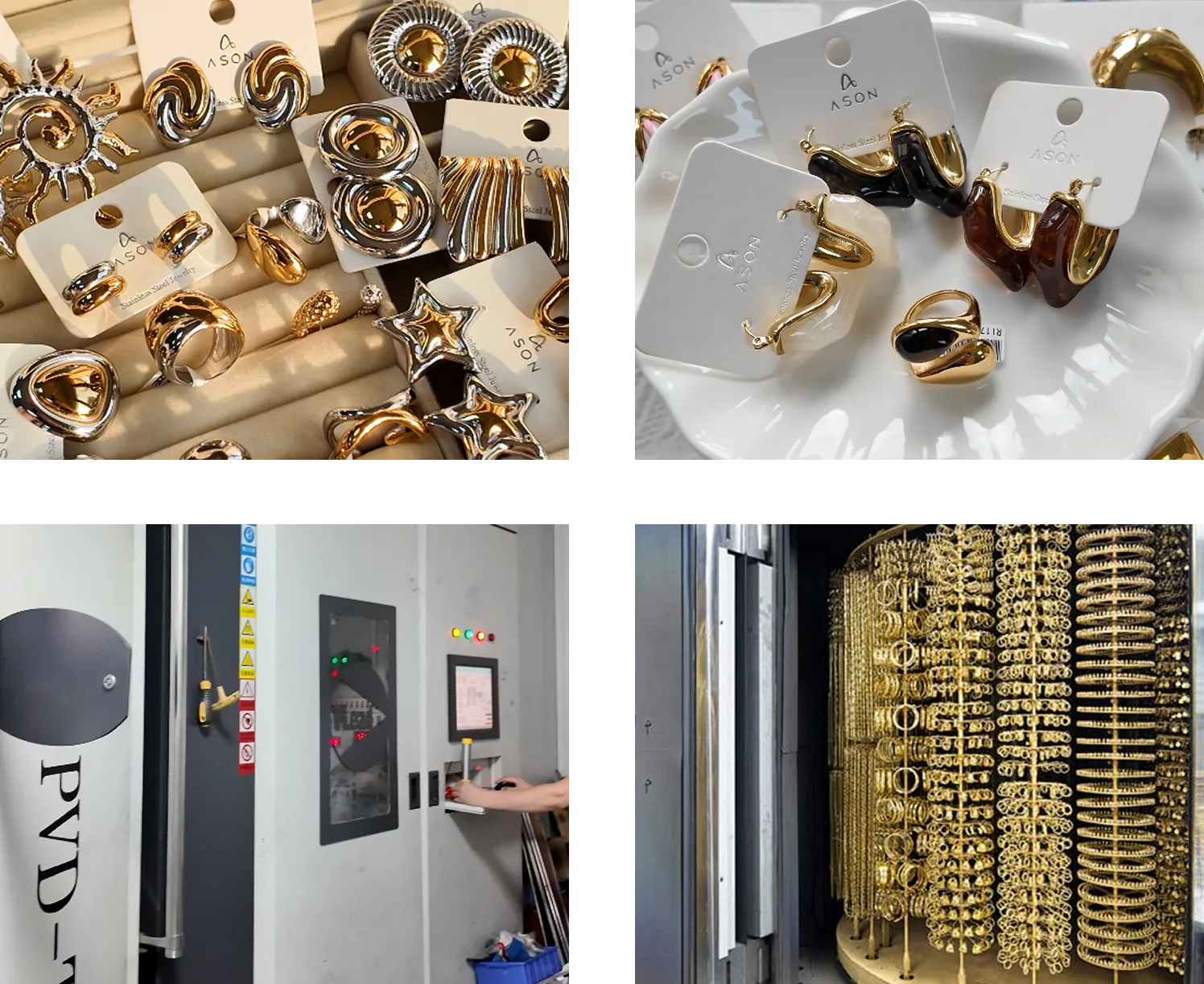 ASON is a professional manufacture of fashion stainless steel jewelry with self-own factory located in Dong Guan, the world’s factory capital, with an Excellent R&D department, we are experienced in designing and production, we can launch 50-100 new products every month. Equipped with multiple cutting machines, casting equipment, mold machines and other professional production tools. Factory direct sales, OEM/ODM projects are welcome.