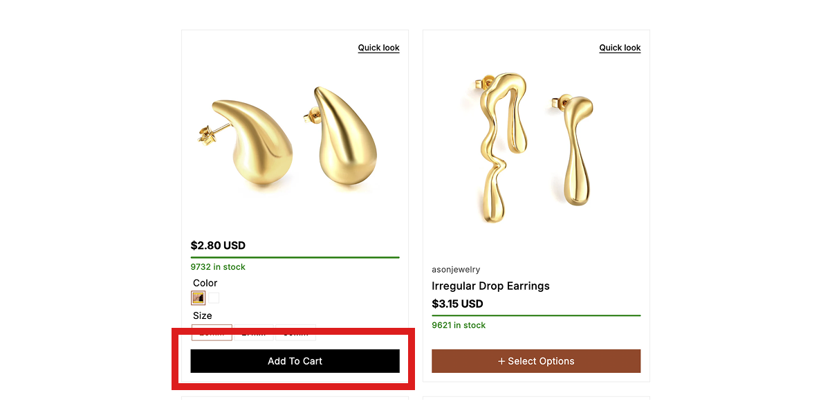 When you find the jewelry you want to order, you just need to enter ring/bracelet/necklace size, choose the color, and then click "Add to cart".