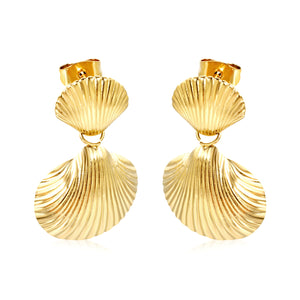 11.3*10.8mm Small Shell+17.6mm Large Shell Stud Earrings Gold Color