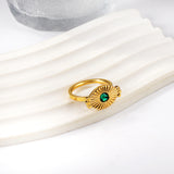 18K Gold Plated Stainless Steel Natural Green Stone Sun Shaped Ring Punk Style Ring