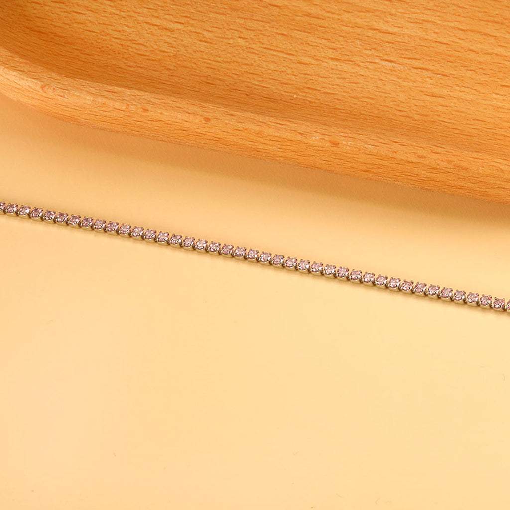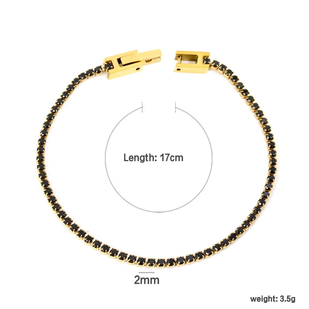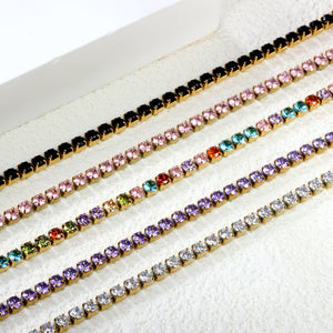 2mm/3mm round purple/pink/mixed/black crystal/white zirconium clasp bracelet 17cm steel/gold color