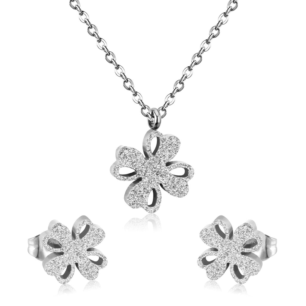 ASON Frosted Flower Chain Pendant Necklace Piercing Earrings Gold Color Stainless Steel for Women Jewelry Sets Fashion