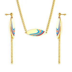 Fashion Leaf Shape With Mixed Color Ribbon Jewelry Set