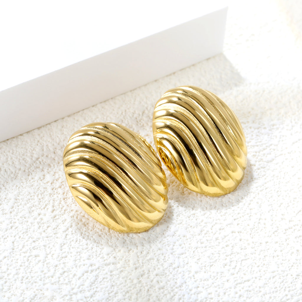 These Oval Stripe Earrings measure 27.5*33.3mm and feature a unique striped design. Crafted with precision, these earrings add a touch of elegance to any outfit. Elevate your style with these expertly crafted accessories.