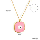 Welded 4mm circle + 16.5mm square green/white eyeball white/black/purple/red/blue/pink base oil drop pendant necklace 40+5cm+6mm round plate Gold color
